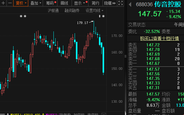 不过,良好的业绩并没有带来股价的上涨。此前股价4连跌的传音控股,今天早盘重挫,盘中跌幅一度超过10%,上午收盘跌超9%。