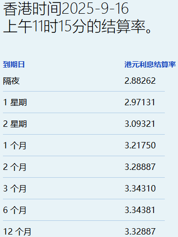 智通财经APP获悉,9月16日,港元拆息普遍向上,而与楼按相关的一个月拆息报3.2175%,升2.714基点,连升三日兼创两周高位,为8月29日后最高;反映银行资金成本的三个月拆息报3.3431%,升4.31基点。