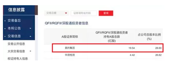 1月21日,深交所交易信息显示,截至1月20日,美的集团的外资(含QFII、RQFII、深股通投资者等)持股比例达28%,其中北上资金持有美的集团12.25亿股,占总股本的17.55%;QFII、RQFII等持有约7.29亿股,占总股本约10.45%,确认触及沪深股通的“限购线”。