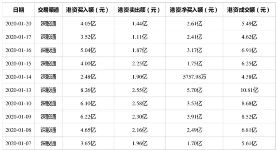 同花顺数据显示,仅1月20日,美的集团就获深股通买入4.05亿,卖出1.44亿,净买入2.61亿,净买入额占该股当日总成交量的21.45%。最近一个月外资累计净买入29.64亿;近两个月外资累计净买入57.25亿;2020年以来,除了1月3日北上资金略微净卖出外,其他交易日全为净买入。