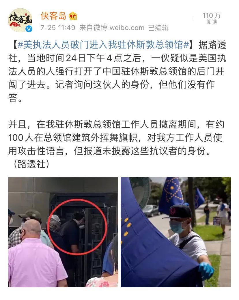 震惊!美方人员破门进入中国驻休斯敦总领馆?
