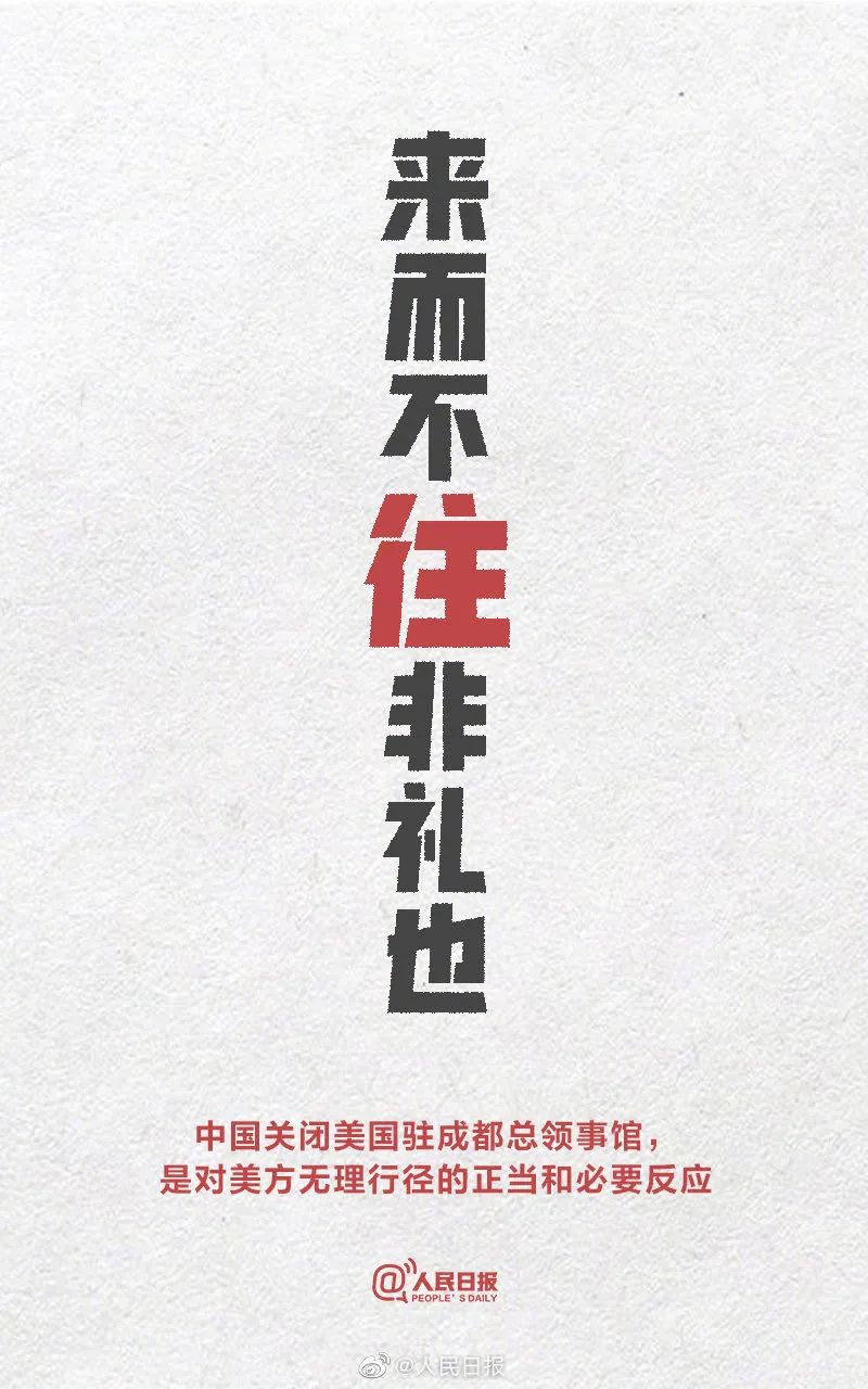 24日,人民日报钟声对美方单方面挑起事端发表评论:7月21日,美方突然要求中方关闭驻休斯敦总领事馆,严重违反国际法和国际关系基本准则,严重违反中美领事条约有关规定,严重破坏中美关系,十分蛮横无理。来而不往非礼也。7月24日上午,中国外交部通知美国驻华使馆,中方决定撤销对美国驻成都总领事馆的设立和运行许可,并对该总领事馆停止一切业务和活动提出具体要求。中方对美方无理行径作出正当和必要反应,符合国际法和国际关系基本准则,符合外交惯例。中美之间出现目前的局面,是中方不愿看到的,责任完全在美方。美方应当立即撤销有关错误决定,为两国关系重归正常创造必要条件。