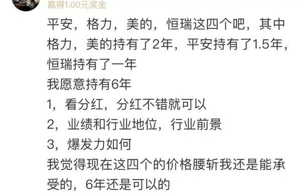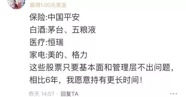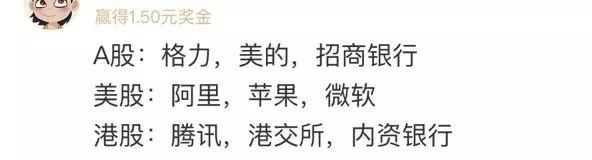 从网友回复来看,答案大部分是各行业龙头,比如贵州茅台、五粮液、格力电器、美的集团、中国平安、招商银行等等。