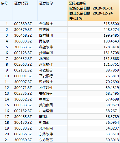 具体来看,区块链50指数样本股中年内股价涨幅超100%的股票分别为金溢科技、东方通、四方精创、同花顺、科蓝软件、梦网集团、北信源、远光软件。其中,金溢科技以315.65%的涨幅居首。