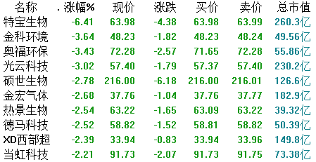 跌幅方面,特宝生物跌逾6%,金科环境(688466.SH)、奥福环保(688021.SH)、光云科技(688365.SH)等跟跌,跌幅均逾3%。