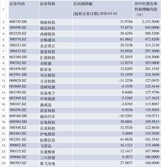 在华为强劲增长的带动下,华为的“小伙伴”也实现了业务增长。记者梳理A股上市公司发布的2019年业绩预告发现,2019年预告净利润增幅中值超过100%的华为概念股超过20家。