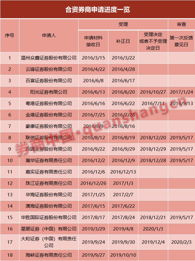 值得一提的是,同为两岸合资券商的海峡证券也在2019年9月提起申请,其发起股东为福建投资开发集团和台湾元富证券。在10月10日被要求资料补正后,海峡证券目前尚未获得监管受理。
