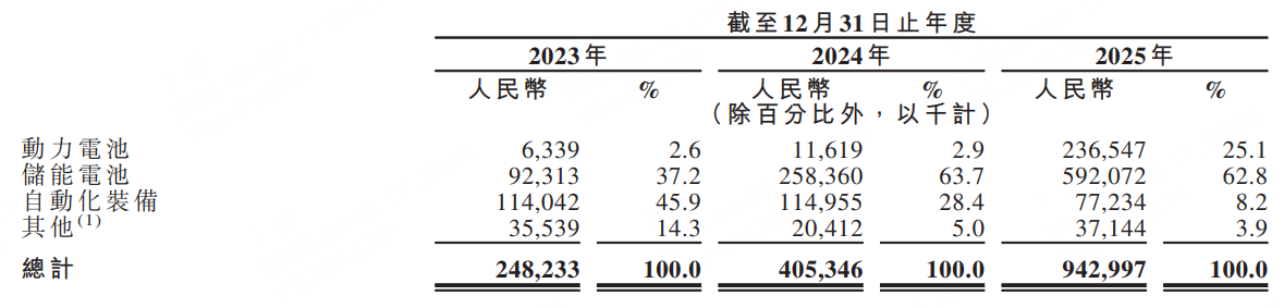 公司收入从2024年的4.05亿元大幅增加至2025年的9.43亿元,增幅达132.8%。分业务看,动力电池销售收入从2024年的1160万元暴增至2025年的2.37亿元,销量从0.02GWh增至0.78GWh;储能电池销售收入也从2.58亿元增至5.92亿元,销量从0.48GWh增至1.17GWh。