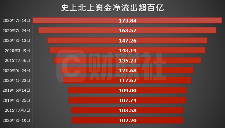 事实上,北向资金单日净流出超百亿的情形并不多见,据财联社统计,北向资金当日净流出超百亿元时大盘基本上处于下跌状态,并且次日市场也大多以下跌为主,拉长时间来看,一周内市场涨跌互现,这意味北向资金的净卖出力度较大时,对短期市场会形成较为明显的压制。