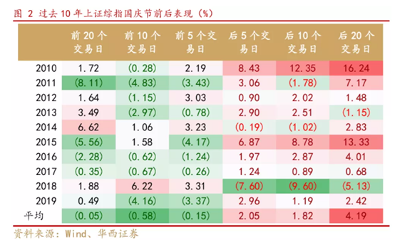 对于当下的行情而言,持股还是持币显然也成为投资者应当考虑的重点话题。据华西证券策略团队考察过去10年A股市场国庆节前后的市场表现发现。整体来看,A股历史上国庆长假前往往跌多涨少,少数年份(2018年)虽然长假前市场有所反弹,但是受长假期间海外市场波动影响,节后仍会存在补跌风险。而在国庆节后,市场整体上行的确定性相对较高。