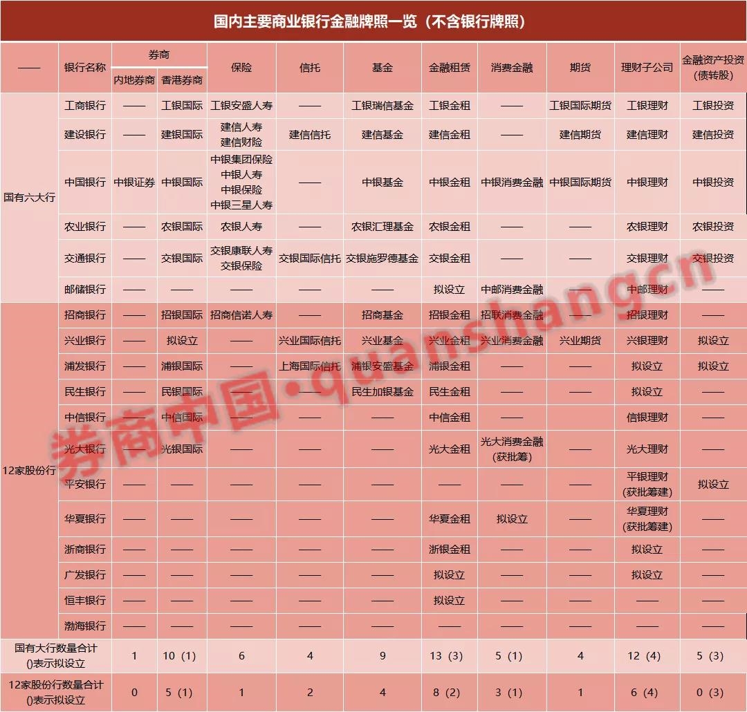 18家全国性银行九类牌照大点兵 国有大行谁缺券商牌照?