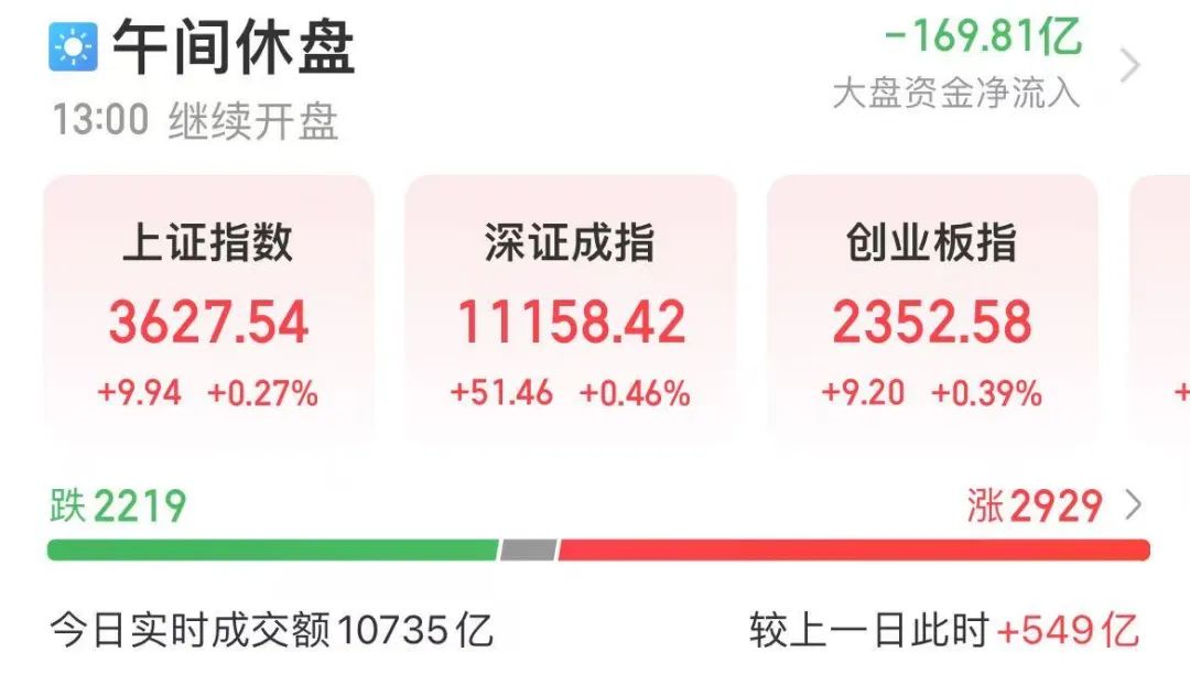 今天上午,A股震荡走强,三大指数均小幅上涨。