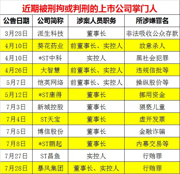 短短四个月时间里,A股市场董事长或实际控制人被抓的达到了12人之多,A股董事长上演大片“监狱风云”!