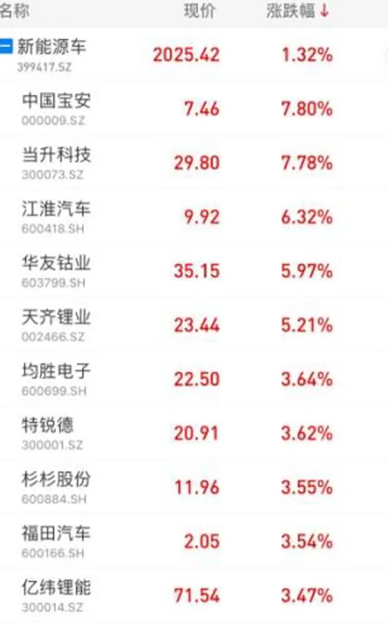 上述消息提振了今日A股市场新能源汽车板块表现。