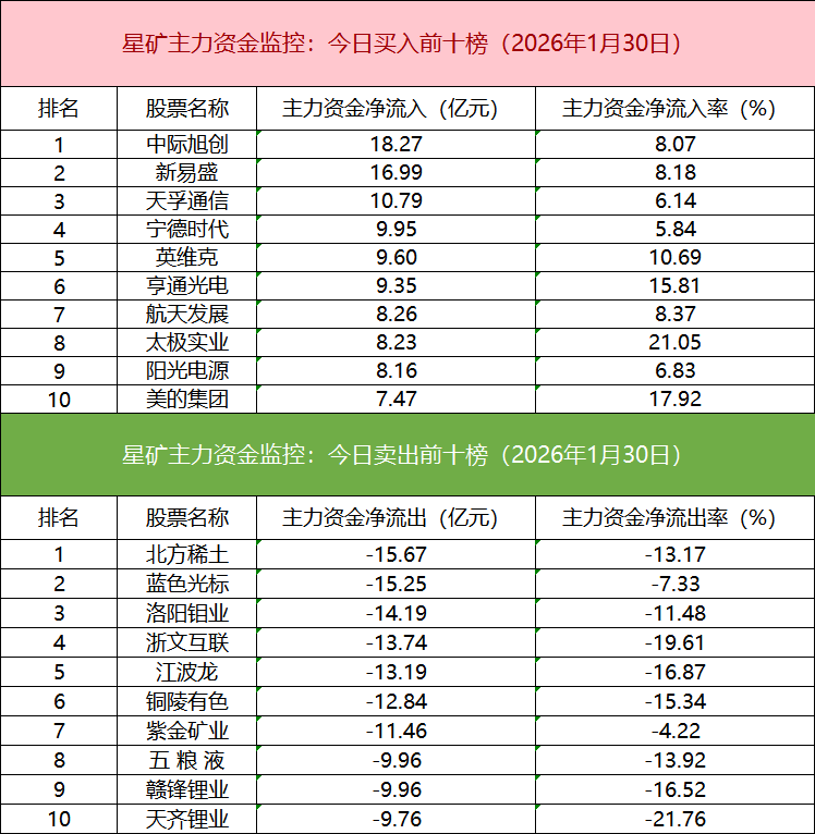 主力资金流出前十的个股所属板块较为分散,北方稀土净流出居首。