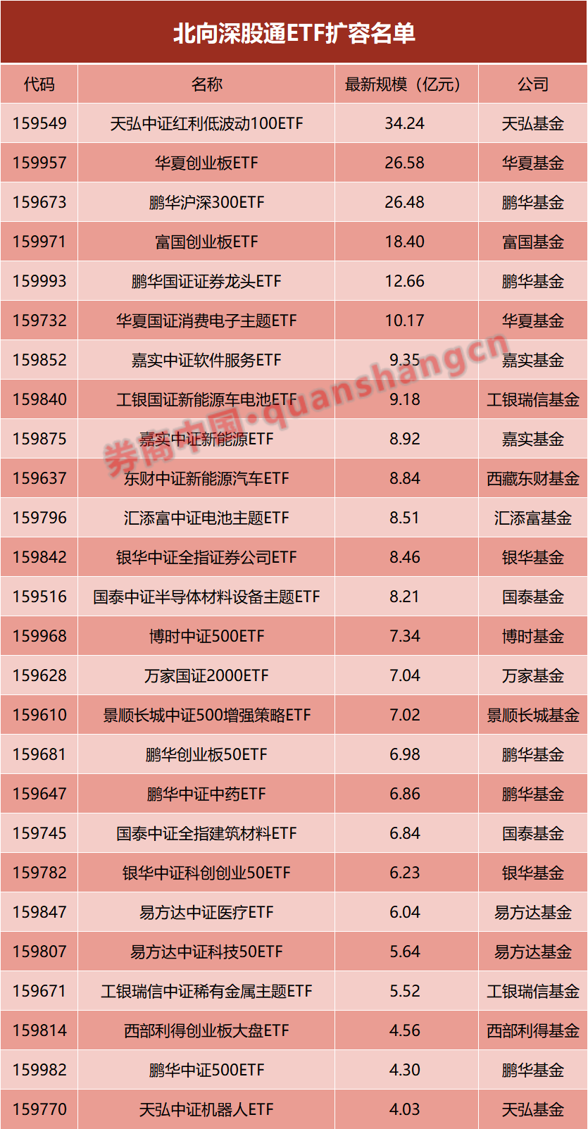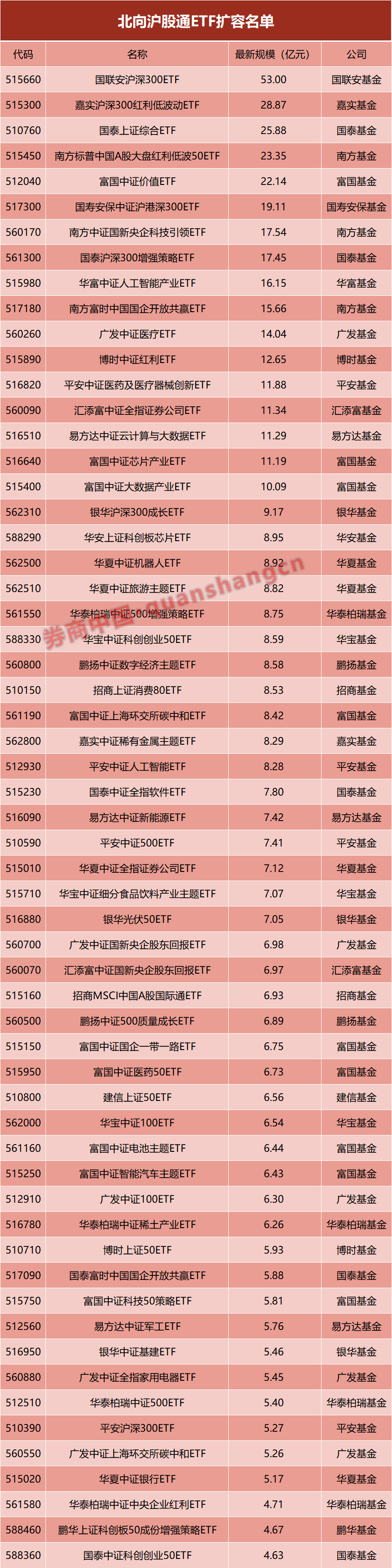 北向的沪股通和深股通共有85只ETF调入,包括59只在上交所上市的ETF及26只在深交所上市的ETF。