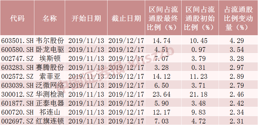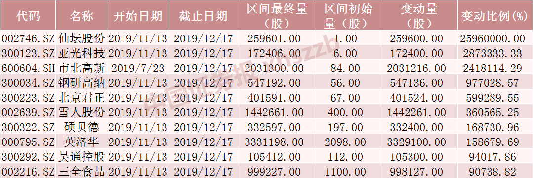 从持股变动比例来看,截至12月17日的近24个交易日北向资金对139只个股的持股变动比例超过了100%,获得北上资金的明显增持。变动比例位居前三的仙坛股份、亚光股份、市北高新。