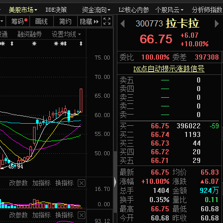 拉卡拉复牌后直线拉升涨停,报66.75元。