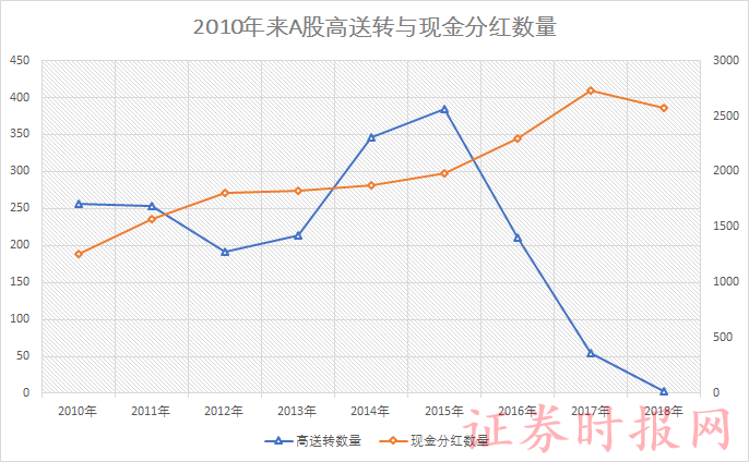 从近几年的分红送转情况来看,随着监管层的高压监管,上市公司“高送转”热度急剧降温,但现金分红情况则大为改观。