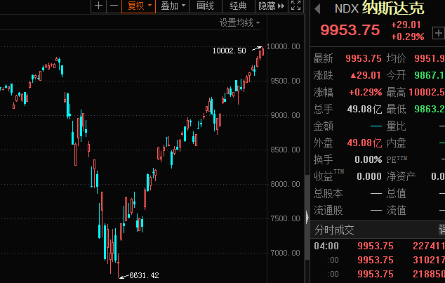 美东时间周二,美国股市三大指数收盘涨跌不一,纳指盘中首次涨破10000点,续创历史新高。截止收盘,道指下跌300.14点,跌幅1.09%,纳指上涨0.29%,标普500指数下跌0.78%。