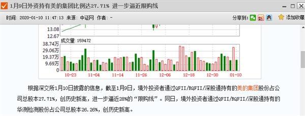 算上QFII和RQFII渠道的持股,则美的集团、华测检测均离28%的外资股比警戒线不远。