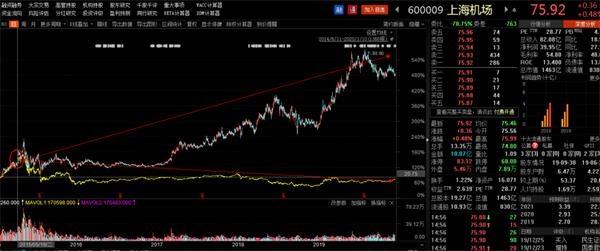 超过4年的时间内,上海机场股价涨幅高达176.37%,同期的上证指数,下跌了27.81%。