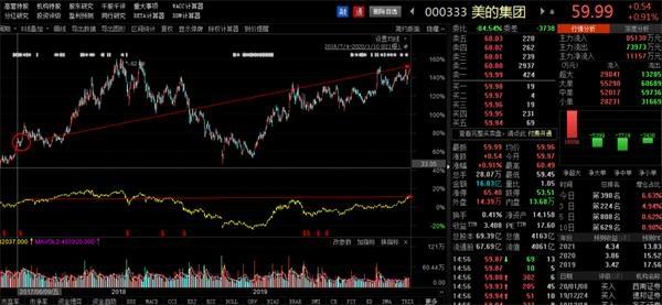 2年多时间内,美的集团股价涨幅高达49.04%,同期的上证指数,下跌了1.84%。
