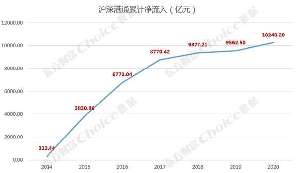 从数据上看,自2014年沪港通开通以来,通过沪港通和深港通两个渠道净流入的资金合计达到10248.20亿元。