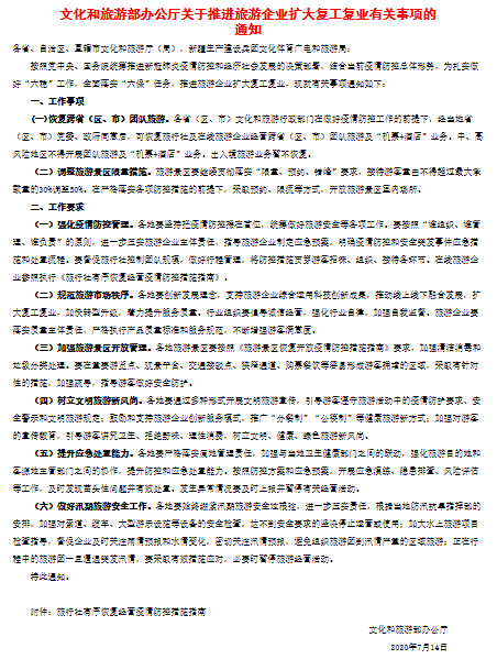 根据通知,推进旅游企业扩大复工复业主要有两大工作事项: