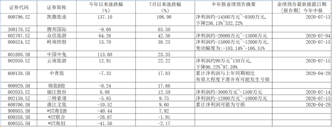 譬如,云南旅游和丽江股份刚刚向上修正了业绩。