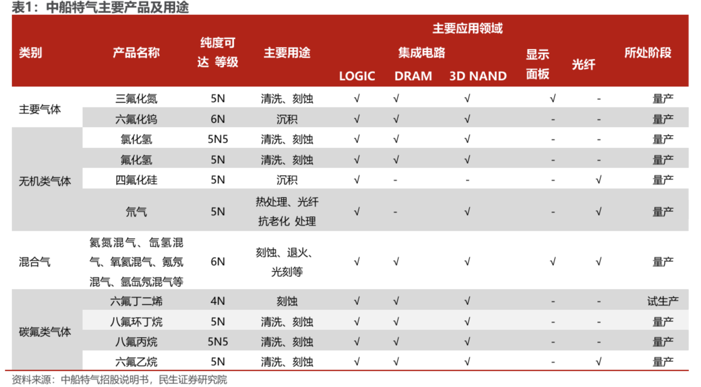 技术壁垒极高:6N/7N级量产,全球仅中船特气等少数企业具备;