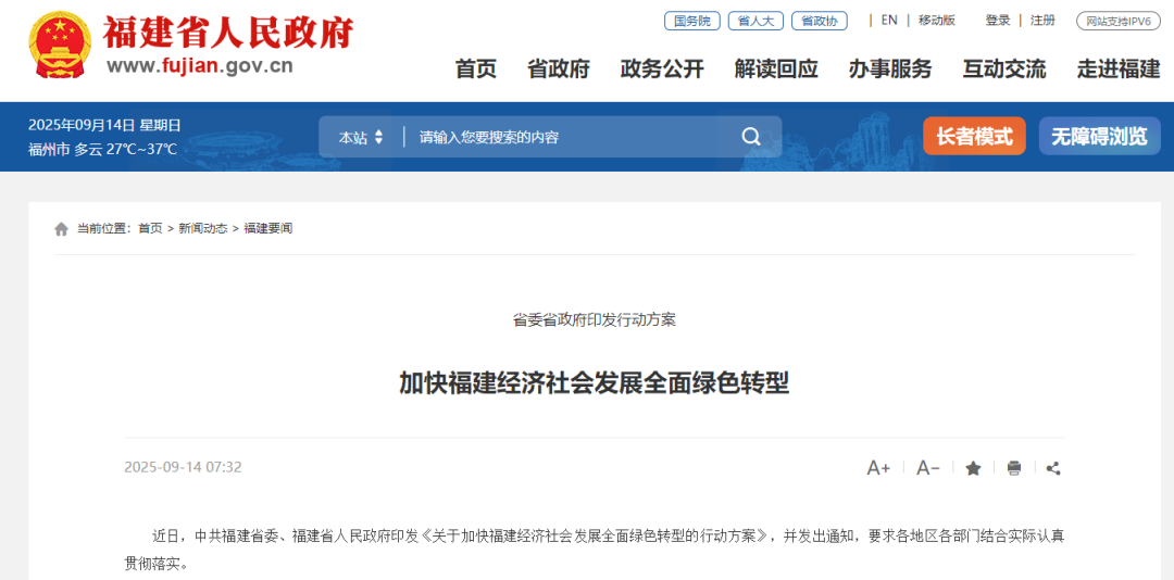 福建日报消息,近日,福建省委、福建省人民政府印发《关于加快福建经济社会发展全面绿色转型的行动方案》,并发出通知。来看重点: