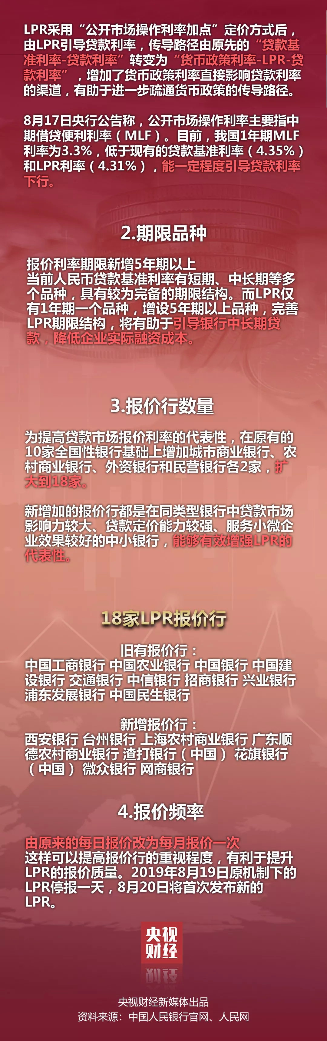 8月17日,央行发布公告,为深化利率市场化改革,提高利率传导效率,推动降低实体经济融资成本,决定改革完善贷款市场报价利率(LPR)形成机制。