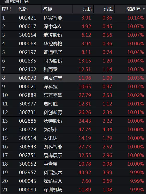 A股方面,三大股指均上涨,截至发稿,上证涨0.26%,创业板涨0.24%。深圳本地股近30只涨停。