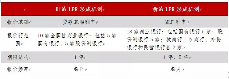 1)LPR报价方式由参考基准利率改为参考公开市场操作利率,即以中期借贷便利(MLF)为基础加点形成;