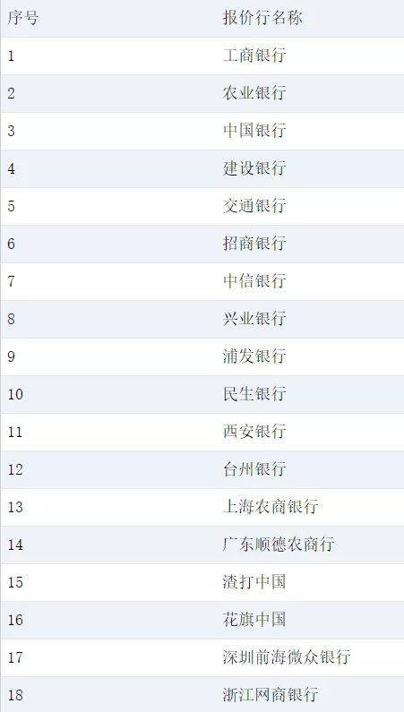 按照央行的规定,报价行在原有的10家全国性银行基础上增加城市商业银行、农村商业银行、外资银行和民营银行各2家,扩大到18家。新增加的报价行都是在同类型银行中贷款市场影响力较大、贷款定价能力较强、服务小微企业效果较好的中小银行,能够有效增强LPR的代表性。