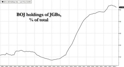 目前,日本央行所持有的日本国债比重超过了五成。在日本央行计划缩减巨额购债规模之际,投资者显然格外担忧债券需求下降,该国长期债券上演的严重抛售无疑正在重创寿险公司。