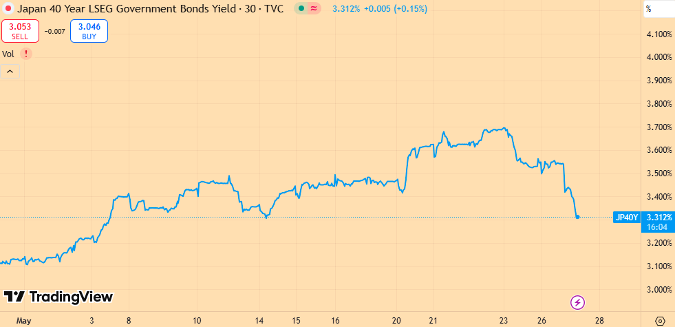 在这些利好消息发布后,日本40年期国债收益率日内大幅下跌了约25个基点至3.285%。