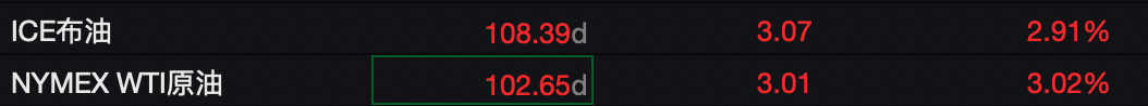 油价、LME铝则大幅飙升。截至发稿,ICE布油站上108美元/桶,LEM铝大涨超5%。