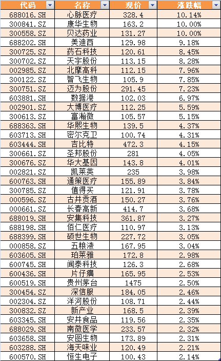 涨幅排行榜