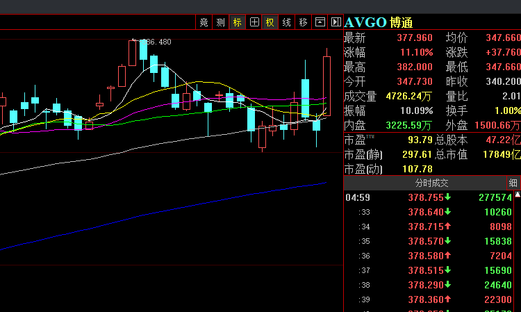 美东时间周一,受谷歌股价强劲表现带动,作为其关键芯片合作伙伴的博通股价飙升。截至收盘,博通上涨11.1%,创下自4月9日以来的最佳单日表现。