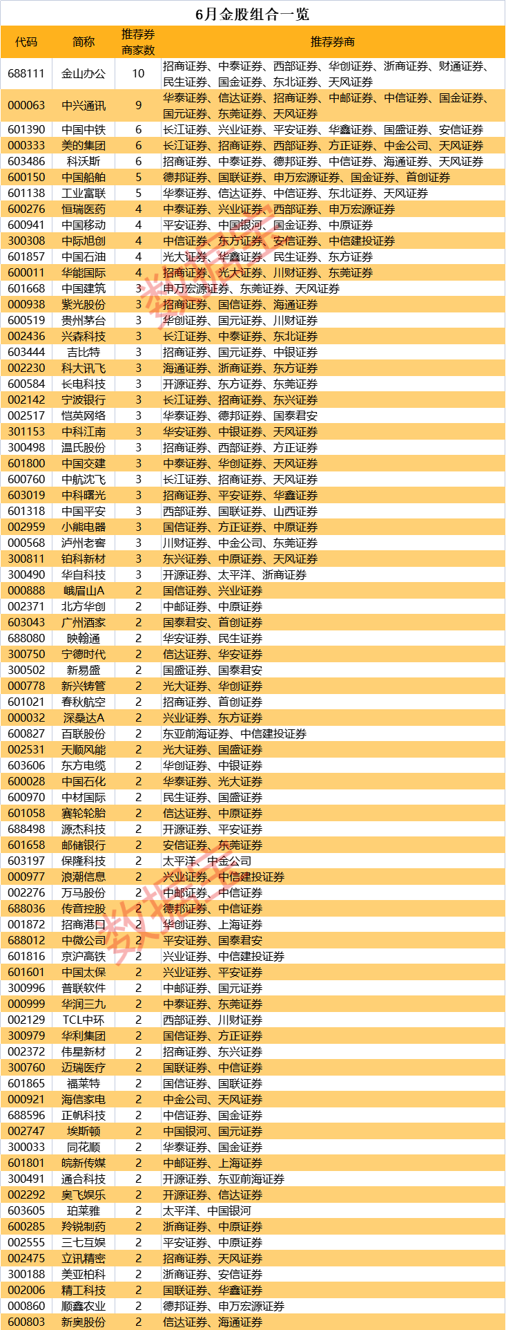 45家券商合计推荐330只6月金股,78只金股获2家及以上机构推荐。