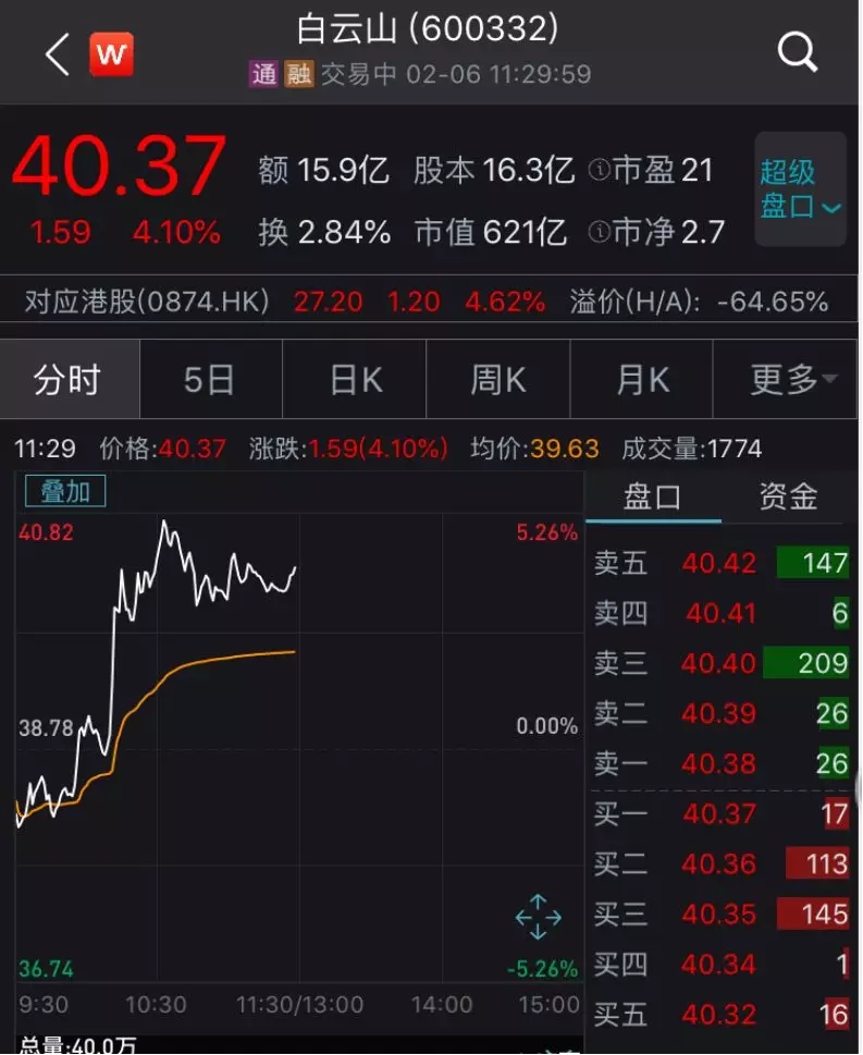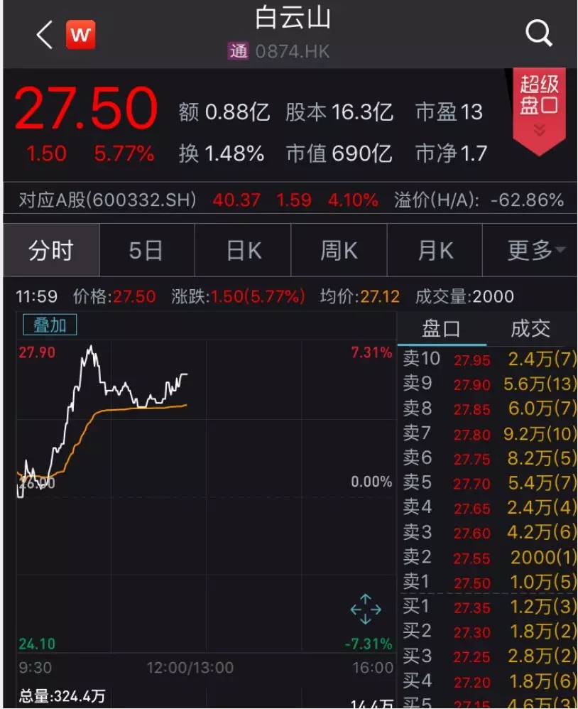 作为国内凉茶龙头的白云山,今日开盘受此消息面刺激,股价异动拉升,上午盘中最高涨幅一度超过5%,港股白云山更是大涨逾7%。