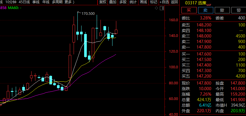 受此消息刺激,3月25日早盘,被市场视为“词元龙头股”的迅策(03317.HK)一度大涨超过15%,截至记者发稿涨幅仍在6%以上。