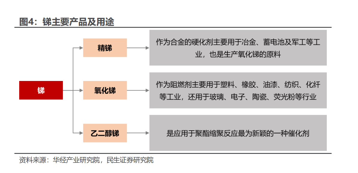 据悉,锑是一种银白色有光泽硬而脆的金属,在地壳中的含量为0.0001%,因其用途广泛,且常作为添加剂的角色参与工业制造,因而被称为“工业味精”。但锑制品使用后几乎不可回收或者难以回收,目前仅蓄电池中的部分铅锑合金栅板可以实现回收,且回收再生量十分有限。