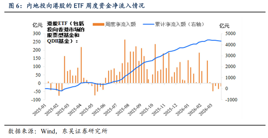 上周内地投向中国香港市场的ETF(港股通+QDII)净流入。总规模增加至4289.8亿元,增加7.1亿元。其中港股通ETF净流入15.9亿元,QDII ETF净流出13.9亿元。港股宽基净流出0.1亿。净流入行业主题:医药。