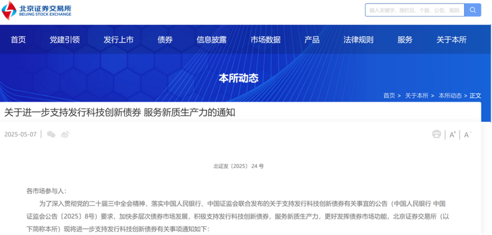 多家交易所同步出动作。根据《公告》精神,上交所、深交所、北交所同步配发《关于进一步支持发行科技创新债券服务新质生产力的通知》,进一步提出细化支持措施。