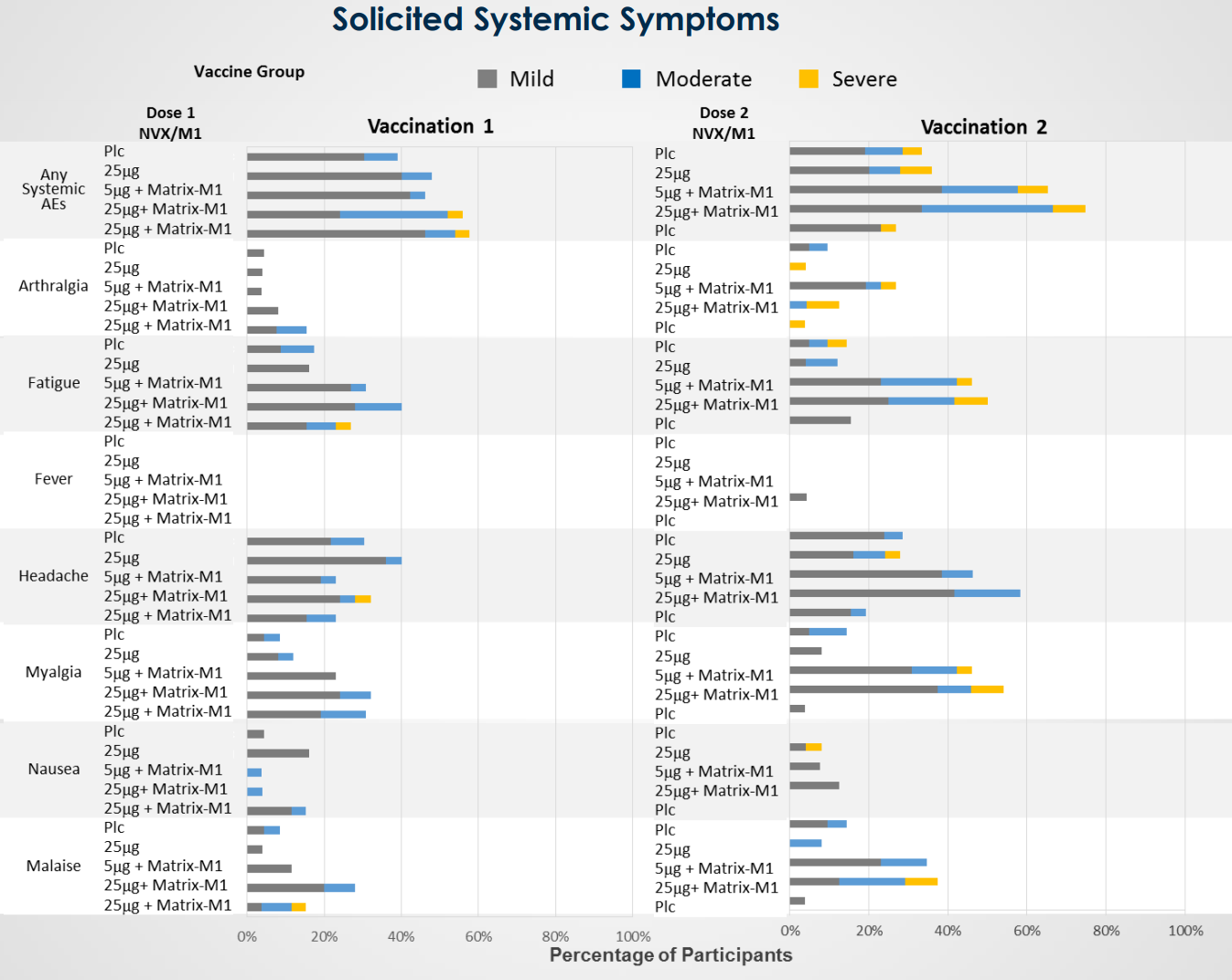 在随后召开的发布会上,诺瓦瓦克斯医药回应称疫苗表现安全,所有百余名参与实验的志愿者整体只出现了持续一至两天的温和不良反应。有一名志愿者接受注射后出现了皮肤感染,事后被证明与疫苗无关。