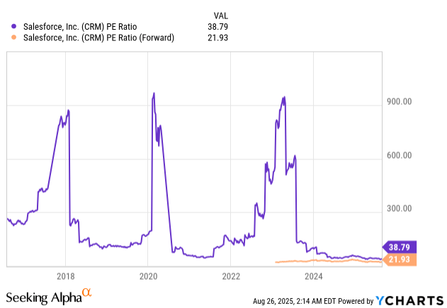 Agentforce的快速渗透尤为显著:一季度30%订单来自现有客户扩张,若与Data Cloud业务结合,ARR将接近10亿美元,意味着同比增幅达120%。