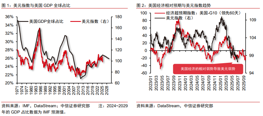1)美元缺乏长期走强基础,“去美元”趋势持续强化。根据IMF预测,2025年-2029年,美国GDP占全球比重将持续下滑,这表明美元缺乏长期走强基础。根据BofA Global Fund Manager Survey,“去美元”成为高度趋同的共识,目前低配比例已经创过去20年的新低;多数投资者认为“大美丽”法案对美国经济增长提振作用有限,但会显著扩大财政赤字,进一步削弱美元吸引力。